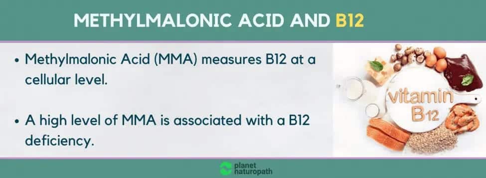 Methylmalonic acid measures B12 at a cellular level and if you have high levels that means you are low in adenosylcobalamin, this is one of the three active forms of B12. High MMA levels don’t mean you need methylcobalamin, this is a common mistake that people can make.