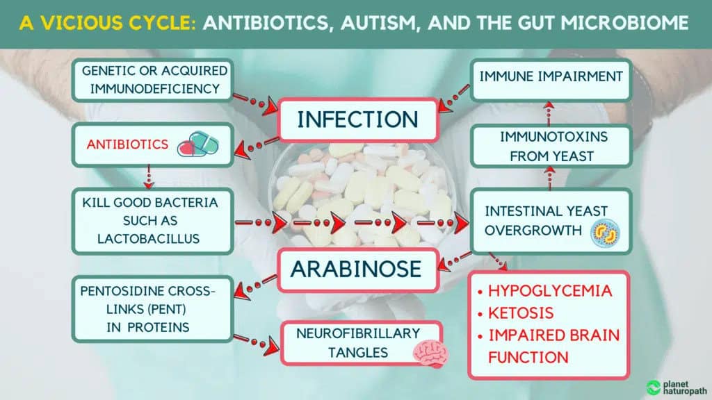 It’s important to note that the elevation of yeast metabolites such as arabinose and tartaric acid produced by Candida, is commonly found in autistic children. Children with autism usually suffer from immune dysfunction and increased frequency of gastrointestinal infections. But the worst part of the story is that in most cases, the doctors prescribe nothing else but  broad-spectrum oral antibiotics which in turn cause intestinal yeast overgrowth.