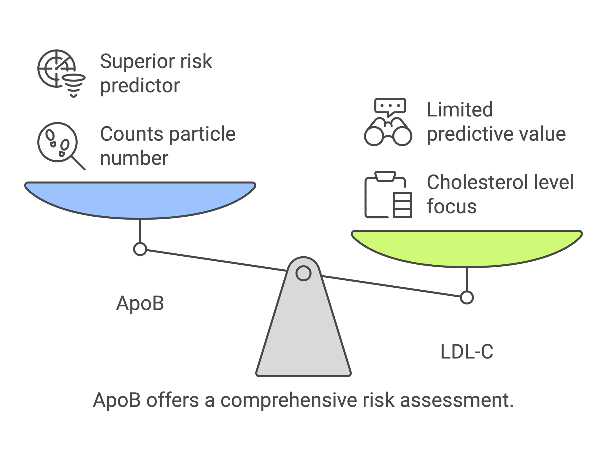 Unlike LDL-C, which only measures cholesterol levels in LDL particles, ApoB counts the actual number of these harmful particles, making it a far better predictor of cardiovascular risk.