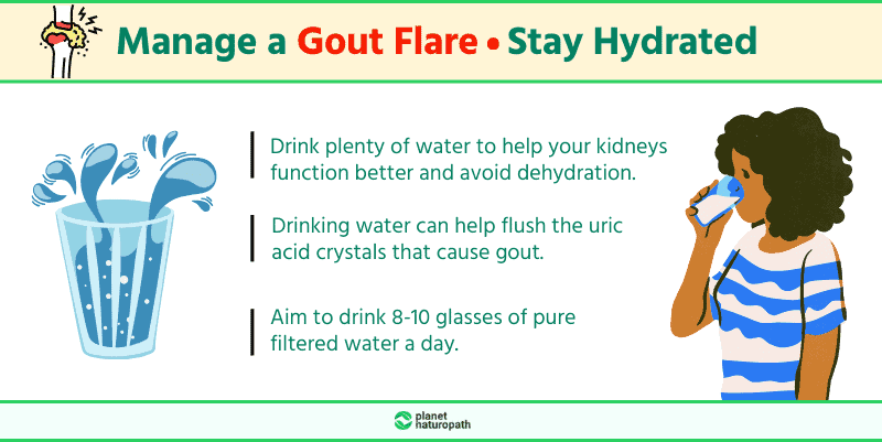 When you consume ample fluids, it aids the kidneys in flushing out excess uric acid, which is a primary contributor to gout.