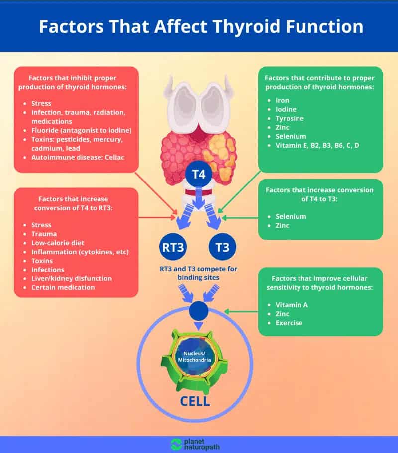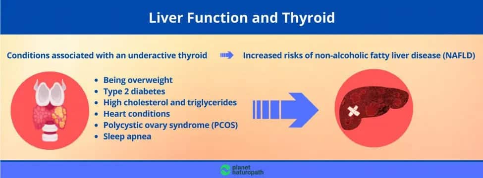Therefore, liver dysfunction also can negatively impact yo conversion of T4 to T3, which is associated with an underactive thyroid.