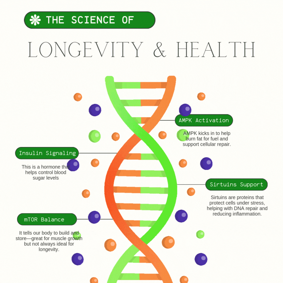 When mTOR is active, it tells our body to build and store—great for muscle growth but not always ideal for longevity.