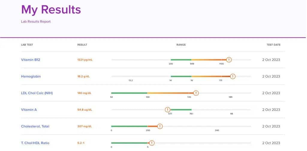 By uploading their lab results, users can gain insight into which markers are within the optimal range and receive personalized recommendations to improve these markers.