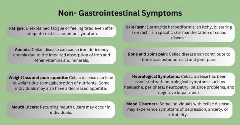 Here’s an elaboration on the symptoms commonly associated with celiac disease: (add infographics)