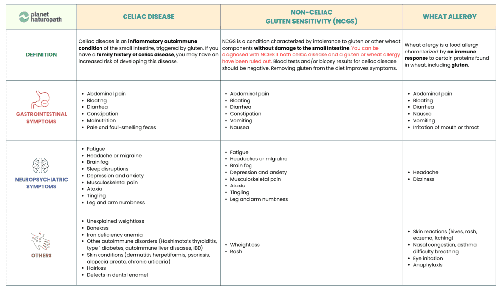 • Non-gluten wheat proteins – These are proteins found in wheat that do not cause celiac disease. But people can still react to them, experiencing symptoms of wheat sensitivity.
