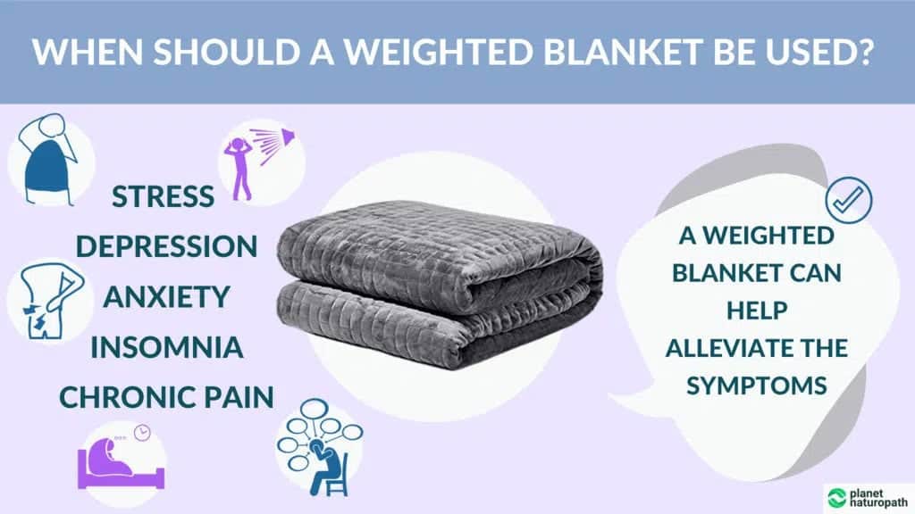 PTSD. The weighted blanket has therapeutic benefits for people who went through traumatic event. Many veterans, people who got into car accident and survivors of a physical assault suffer from PTSD. Weighted blankets can help them improve symptoms such as anxiety, high blood pressure, and pulse rate.