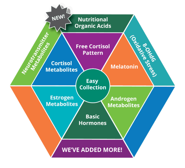 The DUTCH test also measures the metabolites of estrogen which can only be measured in urine, these are the healthy 2-OH-estrone and the unhealthy 4-OH-estrone and 16-OH-estrone which are associated with breast and ovarian cancer and fibroids.